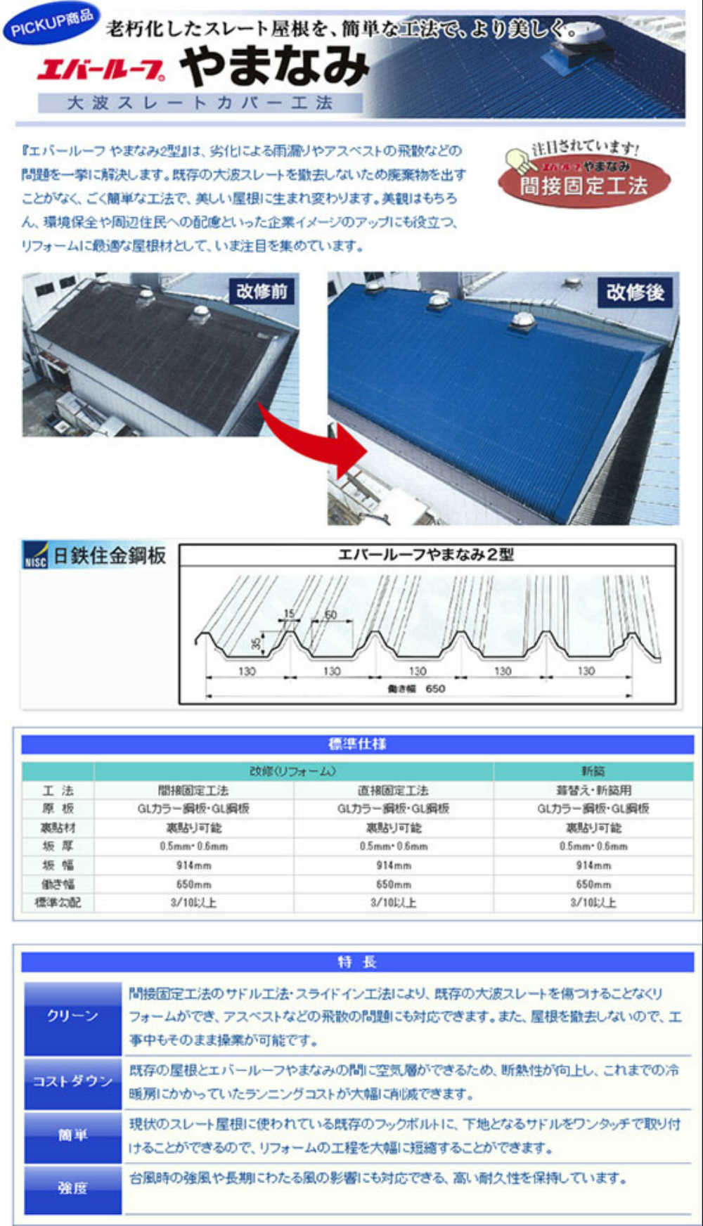 スレート葺き屋根のガルバニウム金属屋根材でのカバールーフ工事