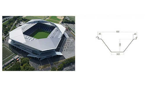 | 経済性・施工性を考慮した最も採用されているハゼ折板屋根 大規模建築物から中小規模建築物まで幅広く採用されています。 スピーディーに確実に葺けるヨドコウのボルトレス工法は、折板に 穴をあけないので水密性に優れ、仕上がりも近代建築にマッチします。 |
